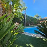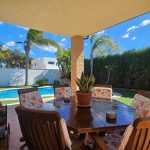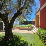 El exterior es uno de sus grandes atractivos, un entorno ideal para disfrutar durante todo el año. La piscina, revestida de gresite, con iluminación y una  elegante escalera romana, se complementa con una acogedora zona de paellero y barbacoa, perfecta para reuniones y momentos de ocio. Todo ello se integra con una fantástica terraza en forma de “L”, con agradables vistas al jardín y a la piscina.